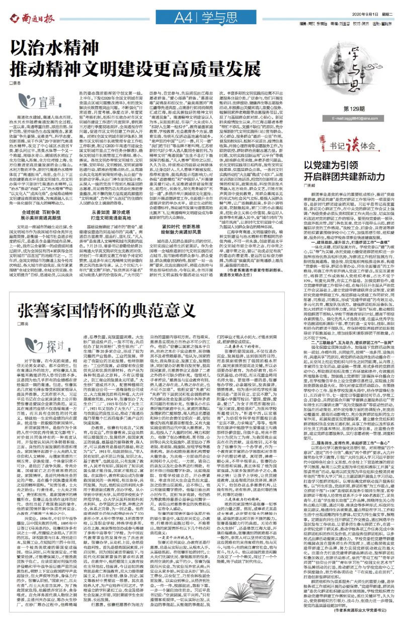 对于张謇,在今天的南通,相信无论男女老幼,都不会陌生。但在南通以外的地方,对张謇其人其事能耳熟能详的人恐怕仍然不多。这是因为他几乎所有的业绩都在曾经偏居一隅的南通。但是,张謇其名几次被毛泽东等党和国家领导人提及并推崇。尤其在前不久,习近平总书记在企业家座谈会上公开称赞张謇是爱国企业家的典范。足见其在南通的业绩不仅造福南通一方百姓,而且具有全国性的时代意义。铸就他一生宏伟业绩的内在源泉,就是他一腔殷殷的家国情怀。